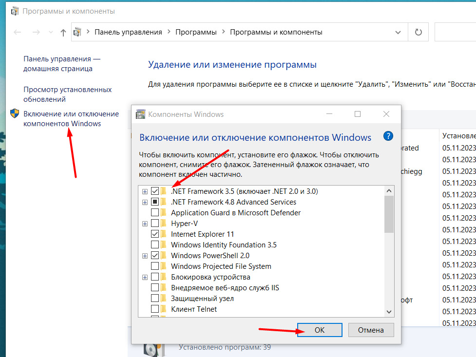 2. Устанавливаем .NET Framework 3.5. Нажимаем Win+R на клавиатуре, вводим appwiz.cpl, жмем Enter, слева нажимаем включение или отключение компонентов Windows.