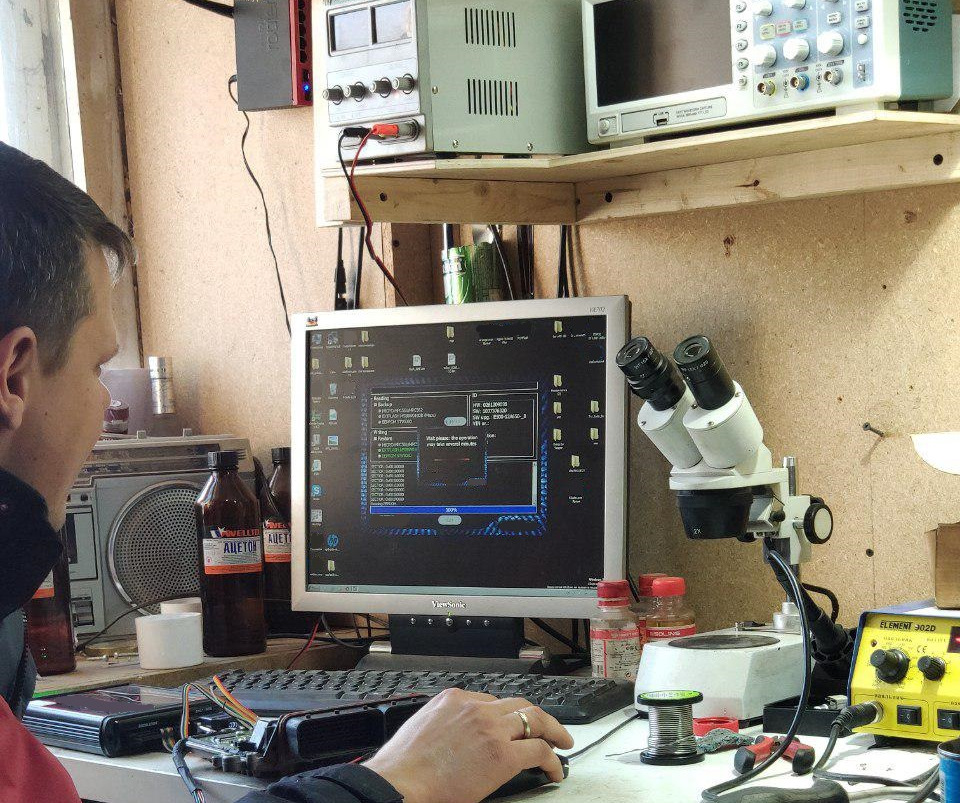 В процессе реанимации блока. До этого и после этого прошивали без снятия блока управления двигателем!