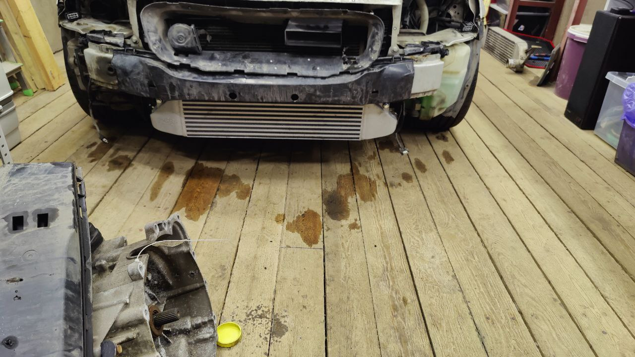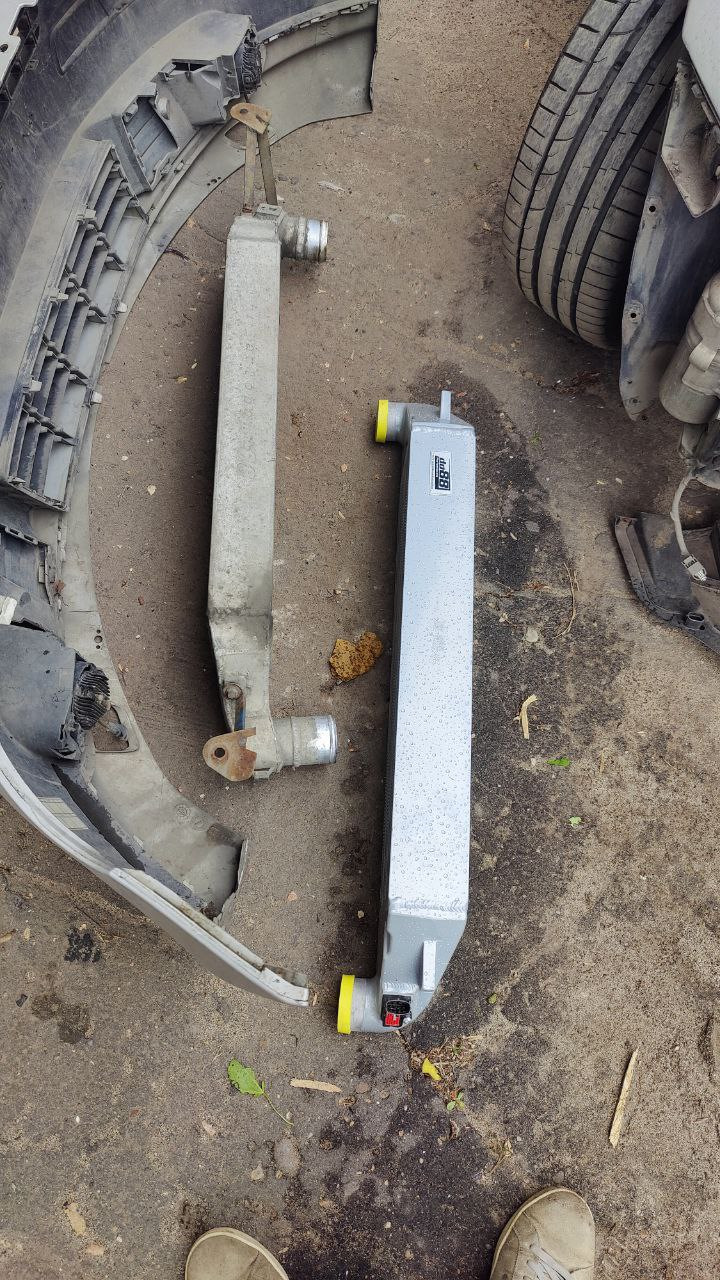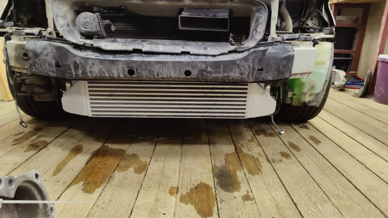При установке первого 2.5Т использовался кастомный интеркулер, который имел ряд недостатков: плохое качество сварки, сорванные резьбы в алюминии и невозможность установки штатного пыльника радиаторов. Было принято решение перейти на проверенное заводское решение.