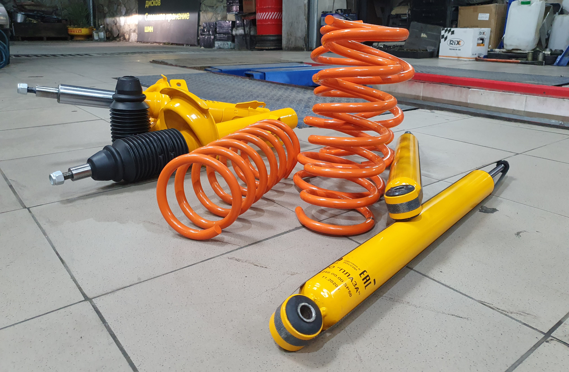 При сборке стоек возникли сложности со стяжкой пружин из-за их высокой жесткости. Также комплектные болты опор оказались чуть длиннее необходимых.